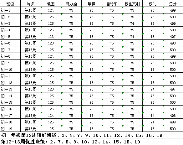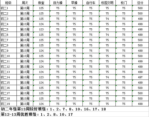 2019-2020学年第二学期 常规管理 第十三周较好班级 第12-13周优胜班级(20200511)