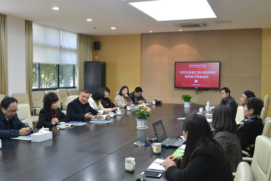 3月9日下午,镇江市外国语学校领导班子一行十人莅临我校,进行课程和德育方面的交流。我校顾苏云校长、周昆副校长出席了交流会。
