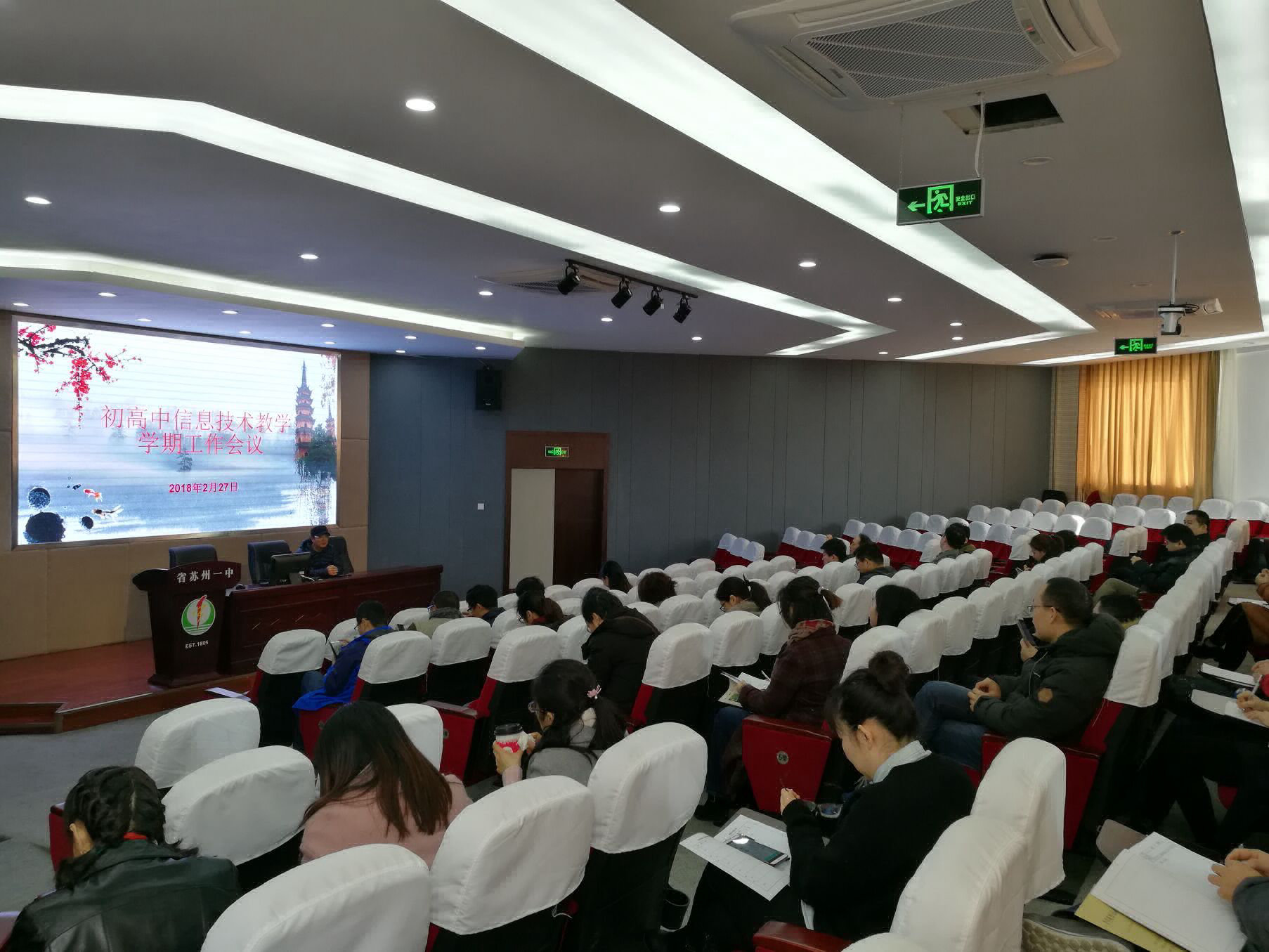 2018年2月27日星期二上午,新学期第一次教研活动在苏州市第一中学报告厅举行,本次活动由原市教研员李竹君老师主持,来自苏州市初高中的信息技术老师参加了此次活动。